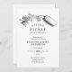 This Little Pickle Gender Neutral shower invitation features a design of vintage cucumber pickles. Text is simple charcoal black. Simply personalize the script for your needs with this minimal design.