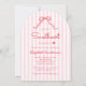 Celebrate a Valentine’s baby shower with this sweet Little Sweetheart invitation. Designed for a baby girl, it features soft pink stripes and a hand-drawn red bow. This cute, girly, and modern invitation has a subtle coquette feel while keeping the design simple, elegant, and easy to personalize - making it the perfect stationery for a love-filled celebration welcoming a baby girl.