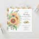 Invitación floral a la fiesta de cumpleaños número 16 con magnífico ramo de girasol pintado a mano y hojas verdes frondosas. Invitamos a nuestros huéspedes a ver la parte de atrás de la coordinación para un toque especial.