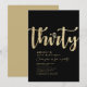 Simple "Treinta" negro y dorado personalizado invitación de 30 años con tipografía elegante y moderna. Personalizar con nombre, edad y detalles del fiesta.