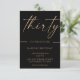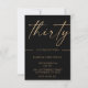 ¿Estás buscando una moda y una invitación elegante para tu próxima celebración de 30 años? No hay más que ver nuestra impresionante invitación de 30 años, que incluye la palabra "Treinta" escrita en letras doradas brillantes contra un elegante fondo negro. Esta invitación es perfecta para todo aquel que quiera celebrar este cumpleaños histórico con estilo, con un diseño audaz y llamativo que seguramente impresionará. Las letras doradas le dan un toque de glamour y sofisticación al conjunto, mientras que el fondo negro ofrece un contraste dramático y elegante.