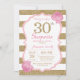 Invitación de cumpleaños número 30 por sorpresa rosa y oro. Purpurina rosa y dorado. Rayas rosas y blancas. Flor Floral Rosa. Cumpleaños de adultos. Fiesta de cumpleaños de mujeres. Para una mayor personalización, haga clic en el botón "Personalizar" y utilice nuestra herramienta de diseño para modificar esta plantilla.