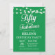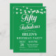 Invitación de cumpleaños número 50 con String Lights Fondo Verde. Fiesta por el cumpleaños de la mujer. Cincuenta y fabuloso. Cualquier edad.