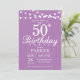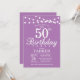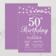 Invitación de cumpleaños número 50 con String Lights. Fondo Lilac De Lavanda Púrpura. Mujeres Lady Elegant Hoy Día. 13. 15. 16. 18. 20. 21. 30. 40. 50. 60. 70. 80. 90. 100. Cualquier edad.
