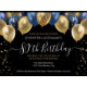 Elegantes globos de purpurina de oro y plata en la parte superior. Todo el texto es ajustable y fácil de cambiar para sus propias necesidades fiestas. Excelente elegancia guardar el diseño de la plantilla de la fiesta de cumpleaños. en cualquier año, la edad puede cambiarse