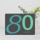 Grandes números azules y verdes de menta que puedes personalizar para leer cualquier edad que quieras en un fondo gris carbón vegetal en la parte delantera, una boca verde menta con texto de carbón vegetal que puedes fácilmente personalizar con la información de tu fiesta de cumpleaños en la parte trasera. Esta invitación fácil de personalizar para el cumpleaños es genial para cualquier edad, desde el cumpleaños 21 hasta el 30, cumpleaños 40, cumpleaños 50, hasta el cumpleaños 99.