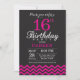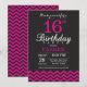 Invitación de cumpleaños número 16 con Chevron rosado negro y caliente.Pizarra.Cumpleaños de niños. Invitar a niño o Chica Bday.