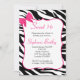 Invitación a los cumpleaños 16 Pink Bow y Zebra Sw