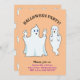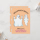 Hermosa Invitación de Halloween Trumpy y Munchy fantasmas. Hay un patrón fantasma en el fondo naranja en el lado de atrás. Todos los textos y números están listos para ser personalizados.