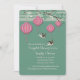 Cuatro, colgando, farolillos chinos de papel están colgados de una rama de bambú. Dos pájaros vuelan sobre tu personalización en esta encantadora invitación. Ideal para cualquier ocasión feliz. ¿Quiere ahorrar dinero? Imprima esta invitación en el papel de esquina cuadrado básico.