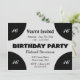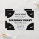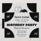 Centro gris en la invitación de la fiesta de cumpleaños negra. Añadir la edad o dejarla en blanco - Completar con RSVP