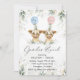 ¿Niño o niña? Este diseño de eucalipto botánico presenta unas cautivantes vacas de color acuático con globos rosas y azules. Con toques de purpurina dorado y hojas botánicas de oro, esta invitación seguramente cautivará a sus huéspedes. Nota: Este diseño presenta gráficos de alta calidad hechos para parecerse a oro brillante- no es oro de Relieve metalizado real.