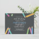 Un pizarrón, lápices de colores, un agudizador de lápiz y un timador adornan la invitación de cumpleaños de este profesor. Cambie el año de fondo para reflejar el año de cumpleaños que está celebrando.