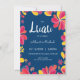 Una invitación de fiesta con un tema de luau hawaiano tropical brillante y colorido con borde floral abstracto y texto moderno de "luau". Perfecta para una boda de estilo luau, ducha de novia, fiesta de compromiso, celebración de cumpleaños o ducha de bebé - para aquellos que aman la diversión y el sol.