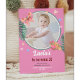 Celebra tu primer cumpleaños con esta invitación elegante y vibrante que incluye una foto y adorables mariposas en tonos rosa y verde. Este diseño llamativo es perfecto para una celebración de primavera o verano.