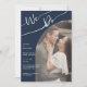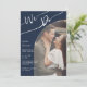 Celebra tu amor con estilo con esta invitación a la boda azul marino que incluye dos fotos personales, un guión elegante escrito a mano y un escaneado código QR para obtener información fácil sobre RSVP y bodas. Perfecto para las parejas modernas que desean un toque elegante y personal para su gran día.