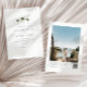 Invitación a matrimonio de fotos con código QR de árbol de palmas. Esta moda y la invitación a la boda de una foto mínima incluyen ilustraciones de palmera y letras y fuentes serif elegantes. ¡Coloca tu foto, detalles de RSVP y código QR en la parte posterior! Una invitación maravillosa para una boda tropical o en la playa.