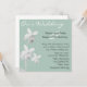 Elegante invitación de boda hecha en verde claro. Invitación cuadrada hecha en verde pálido, con gráficos de orquídeas blancas, a la izquierda. Nuestro Boda en texto blanco y elegante en la parte superior de esta invitación a la bonito. Todo el texto está hecho en blanco o negro y es personalizable para satisfacer las necesidades de su boda. La forma cuadrada puede tomar un franqueo extra cuando se envía por correo, consulte con su servicio postal local.