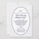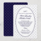 Esta invitación a bodas con motivo de la marca Navy Blue Check es una forma elegante de invitar a los huéspedes a su boda. Con un elegante óvalo en la parte delantera con una combinación de fuentes clásicas con un elegante patrón de comprobación, la parte trasera tiene el mismo patrón de comprobación en la inversa.