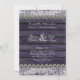 Esta hermosa invitación a la boda presenta imágenes de fondo de madera añil y diamantes de imitación adornados con encaje blanco vintage (imágenes IMPRESIONADAS, no diamantes de imitación reales). Hay espacio en la parte de atrás para subir una foto de la pareja si lo deseas (haz clic en personalizar para hacerlo), o deja ese lado en blanco.