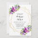 Invitación a matrimonio geométrico con flores púrp