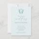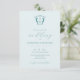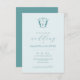 Ahorre en papel y dinero con esta invitación de boda monograma con código QR. Un diseño sencillo pero elegante, esta invitación a la boda presenta tipografía caligráfica con un tipo de letra sans clásico en azul turquesa sobre un azul pálido. Un escudo elegante enmarca las iniciales de la novia y el novio. La tarjeta se revierte a un color turquesa sólido con el código QR de su boda y el espacio para más detalles. Todos los colores son personalizable. Para más invitaciones de bodas con presupuesto, visita www.zazzle.com/dotellabelle