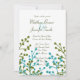 Anuncia a tu boda a tus amigos y familiares con esta invitación casera personalizada. Esta invitación boda presenta un patrón de silueta floral azul y verde sobre un fondo crema con texto verde oscuro. Puede personalizar fácilmente el texto en la página de pedido de producto.