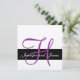 Invitación a la boda plateada con el diseño del monograma púrpura por Elke Clarke ©2009. Personalizar con los nombres de los monogramas y colores bodas. Añada toda la información de su boda en la parte posterior de la tarjeta utilizando las indicaciones del menú fáciles de usar de Zazzle. Se muestra aquí en papel metálico de plata. Escoja entre muchos estilos y colores de papel de lujo para mejorar el diseño de su invitación a la boda.