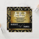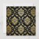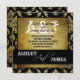 Invitación rústica de matrimonio con damasco negro y monogramas en un efecto fotográfico de papel pintado de té.