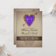 Invitaciones rústicas a la boda rural con el corazón de la flecha de madera morada. Este diseño único tiene un corazón de diseño de madera acentuado en morado con una flecha que atraviesa, con las iniciales de la novia y el novio dentro del corazón. El resto de la invitación tiene un fondo vintage de diseño estampado de lino marrón en burlap. Las palabras "Celebración Boda" se acentúan en blanco sobre una franja marrón oscura. Estas invitaciones bodas son perfectas para una boda de campo, especialmente si la novia está teniendo colores bodas morados. Artículos coincidentes: iniciales de novias y novios, invitaciones a bodas de corazón, invitaciones a bodas rústicas, invitaciones a bodas de campo, invitaciones a bodas de vintage, invitaciones a bodas de corazón y flecha, tribales, antiguas, vintage, afligidas, violetas,