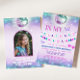 Entre en su época de cumpleaños con esta impresionante invitación, diseñada para la última Swiftie tween! Esta atractiva invitación presenta una glamorosa mezcla de rosa caliente, verde azulado, azul, rosa y morado, con una brillante bola de disco y coloridas cuentas de amistad, que constituyen el escenario para una celebración que recordar. Perfecto para fiestas de danza musical o cualquier reunión festiva, es una invitación que brilla realmente. Además, la parte trasera incluye un lugar especial para añadir tu propia foto, haciendo esta invitación tan personal y única como la propia chica de cumpleaños. Personalizar con los detalles del evento y prepárate para un fiesta que es nada menos que legendario!