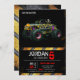 confeti alegre y colorido de los pies, tarjeta de celebración de los pasteles, fiesta de cumpleaños dibujado feliz, carta de invitación con letras negras, camioneta de monstercamión poweramerican , neumático flamecar de fuego , extremodeportivo músculo caliente, rueda grande auto pesado, vehículo camionero fuera de carretera , carrera de motor monstruo gran pie,