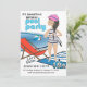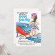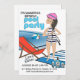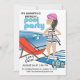 Chica Let's Swim, invitación a la fiesta de cumpleaños en la piscina. Es la invitación perfecta para cualquier chica, cuenta con un chica bañándose a rayas que se está frotando el agua del pelo, así como una piscina, una tumbona y una toalla de playa.