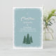 Guión de vacaciones, invitando a sus invitados a su evento de Navidades! El color azul-verde es suave y mullido, lo que da un aspecto más nebuloso. Los árboles expuestos crecen en un bosque mágico, donde se decoran misteriosamente en invierno. Comience su entretenimiento con una amable y hermosa invitación centrada en la naturaleza.