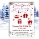 Esta invitación a intercambiar regalos de Navidades rojos y blancos es sencilla con un toque de elegancia con regalos rojos colgados de las luces de los Navidades.