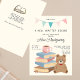 Every kid loves to read, no matter their gender! Stock a baby’s library at a bring-a-baby-book baby shower. Add instructions for bringing a book to the party with these “A new chapter begins`` shower invitations! You can also use these invitations to invite guests to a baby shower hosted at a bookstore or library or your home! Perfect for parents-to-be who are teachers, librarians or bookworms, who just love to read! The modern design with a vintage twist features a stack of books with a cup of tea on top and a teddy bear on the side, all in pastel natural colors. Perfect for a gender neutral shower, baby boy or baby girl! The text in handwritten typography and script is totally editable by clicking on the ´´Personalize´´ button.