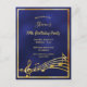 Delante: Una moderna y moderna tarjeta de invitación a los hombres para la fiesta de cumpleaños número 70. Un fondo azul oscuro, azul marino. El color azul es desigual. Con un marco de oro falso y notas musicales, letras de colores dorados. Plantillas para la información de su fiesta. Fondo blanco. Sugerencia: Si no desea que se vea como una postal, haga clic en personalizar, vaya a la parte posterior y quite el separador y el sello postal.