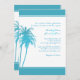 Sencilla y elegante, esta invitación a la boda tropical presenta colores verde azulados o turquesa azules y blancos con la imagen de dos palmeras. Ideal para destinos tropicales y bodas en la playa! El texto de personalizable total le permite utilizar esta invitación única para cualquier ocasión además de los bodas! Tarjetas RSVP también disponibles en mi tienda!