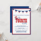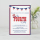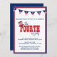 Pancartas rojas blancas y azules El 4 de julio invitan a Ilustraciones de un cartel fiesta rojo, blanco y azul con acento estrella y sombrero superior rojo, blanco y azul. Esta invitación del 4 de julio es una invitación única, divertida y creativa para darle a su familia y amigos una cocina.