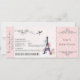 Aquí tienes un pase de abordar con tema de París editable e imprimible por ambas caras que puedes usar en tus eventos especiales.