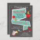 Parejas de Chalkboard Retro Invitaciones de la fiesta de Baby Shower Barbacoa Super lindo y tan retro! Celebre la llegada del recién nacido con una invitación de estilo moderno de mediados de siglo. Acentos acuáticos y rojos con parrilla de barbacoa roja, signos retro y fuentes con un cóctel y rattle rojo todo en un fondo de pizarra. Genial para la pareja que quiere un fiesta al aire libre. Ilustracion dibujado a mano por McBooboo.