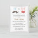 Invitación de Gender Reveal Baby Shower con bigote y diseño de besos y fondo polkadots.