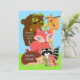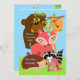 Invitación para niños con lindos animales de bosque de bosques incluyendo un oso, ciervo, pájaros, zorro rojo, puercoespín, mapache y ardilla!
