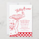 Celebra a la futura novia con estilo delicioso con esta invitación de fiesta de despedida de soltera "That's Amore" de pizza. Con una encantadora ilustración de un chef italiano, pizza en forma de corazón, botella de champán y llamativos acentos de cuadros rojos, este diseño moderno es perfecto para una divertida noche de chicas, fiesta de pizza y prosecco, o una despedida de soltera con tema italiano.