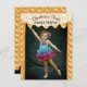 La cortina del teatro se ha separado y su hijo es la estrella del espectáculo. El frente de esta invitación es una plantilla de fotos con un marco de cortina del teatro. La parte posterior de la invitación se puede personalizar cambiando el color de fondo, el color del texto y el estilo. Personaliza esta plantilla para hacer una invitación creativa y única para tu reina bailarina. Diseño original de Night Owl's Menagerie, 2017.