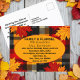 Invite a su familia favorita a lo largo y ancho a una reunión familiar de familia y familia Flannel Plaid con esta moda y vibrante postal de invitación. Este diseño presenta un motivo de hoja de otoño con manchas, perfecto para una reunión de otoño elegante y festiva. El guión en negrita anuncia "Familia y Flannel", escribe todos los detalles importantes en la parte de atrás. Esta postal de personalizable es una manera fácil y elegante de enviar sus invitaciones. Sólo tienes que añadir tus datos personales y ya estás listo.