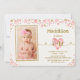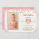Fiesta de primer cumpleaños InviteSweet y niñita invitación a su primer cumpleaños con el corazón rosa y dorado confetti