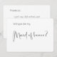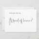 Esta escritura minimalista tarjeta Maid of Honor Propuesta es la manera perfecta de celebrar su ducha de novia con estilo. Presenta una tipografía elegante y moderna. Puede personalizar este diseño haciendo clic en "Personalizar esta plantilla" o si desea cambiar el tipo de letra, los colores de fondo o organizar los elementos de diseño de una manera diferente, puede hacer clic en "Editar usando la herramienta de diseño".