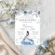 Invitación a Quinceanera de mariposa floral española para azul marino de 15 años