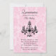 Una lámpara de araña de cristal y un guión elegante marcan el tono de esta invitación y evento de Quniceanera. Se muestra sobre un delicado patrón de damasco floral en el papel básico; sin embargo, sugiero el peso y la textura en el papel de lino. Se puede adaptar fácilmente a cualquier edad.